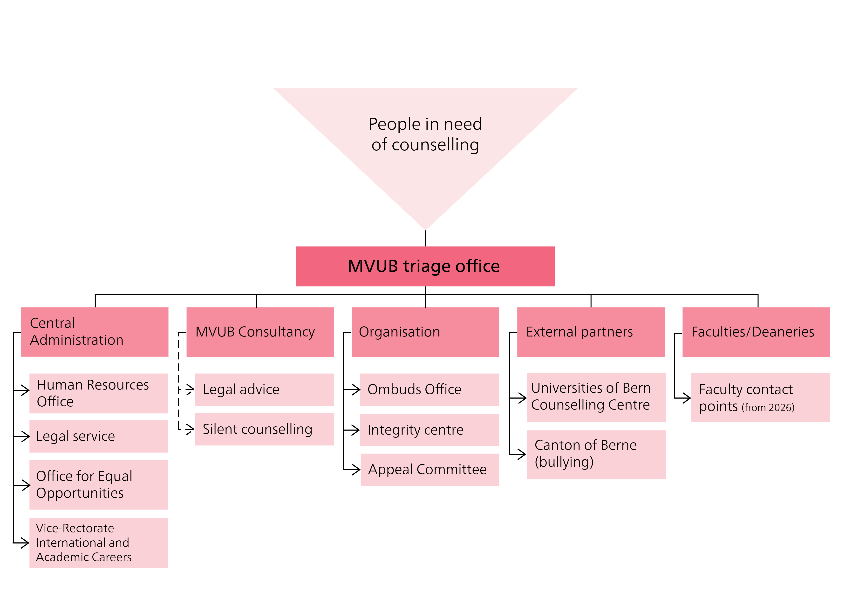 The MVUB triage office is the first point of contact for all intermediate staff in the event of difficulties and conflicts. We support you directly or in your search for the relevant office. All enquiries are treated confidentially. Our legal advice is exclusively for members of the MVUB, but membership is free of charge and does not entail any obligations.